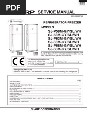 Sharp Sj P58m Gy Fridge Service Manual Refrigerator Engineering Thermodynamics